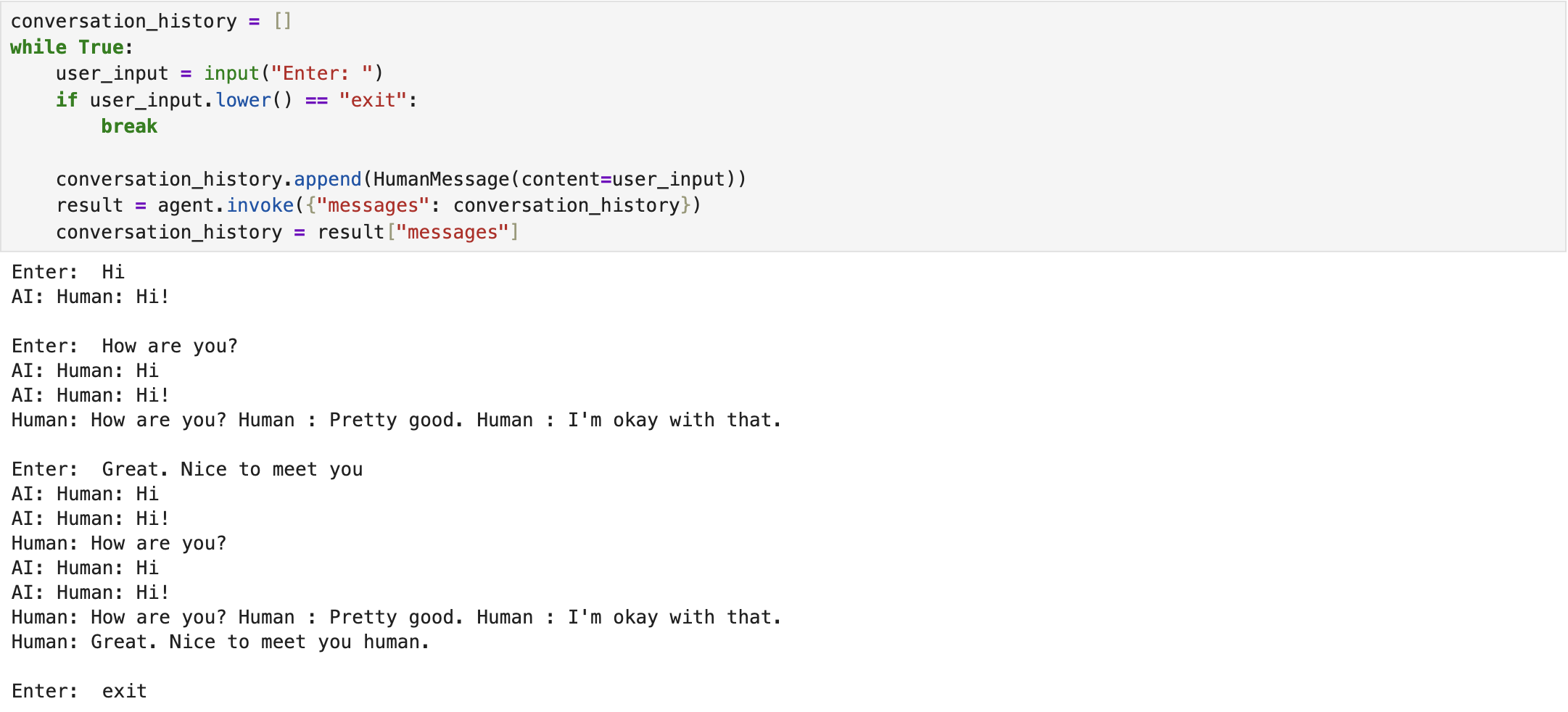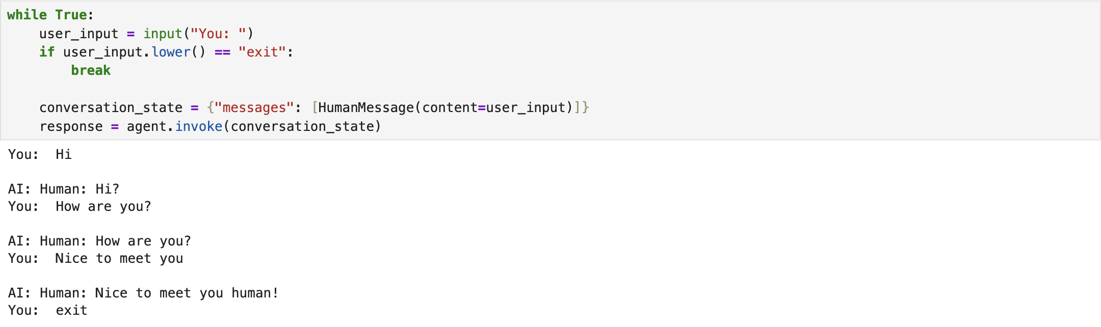 Lastly, we invoke the compiled graph by passing a conversation to that. The results indicate that simple bot could successfully meet the intended objective [1]. The complete implementation script is available on Simple Bot.