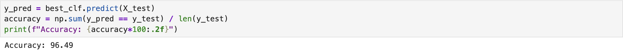 After identifying the best classifier through Grid Search Cross-Validation, we evaluated its performance using the test dataset. The following screenshot presents the corresponding results. The complete implementation script is available on the GitHub page Random Forest Classifier.
