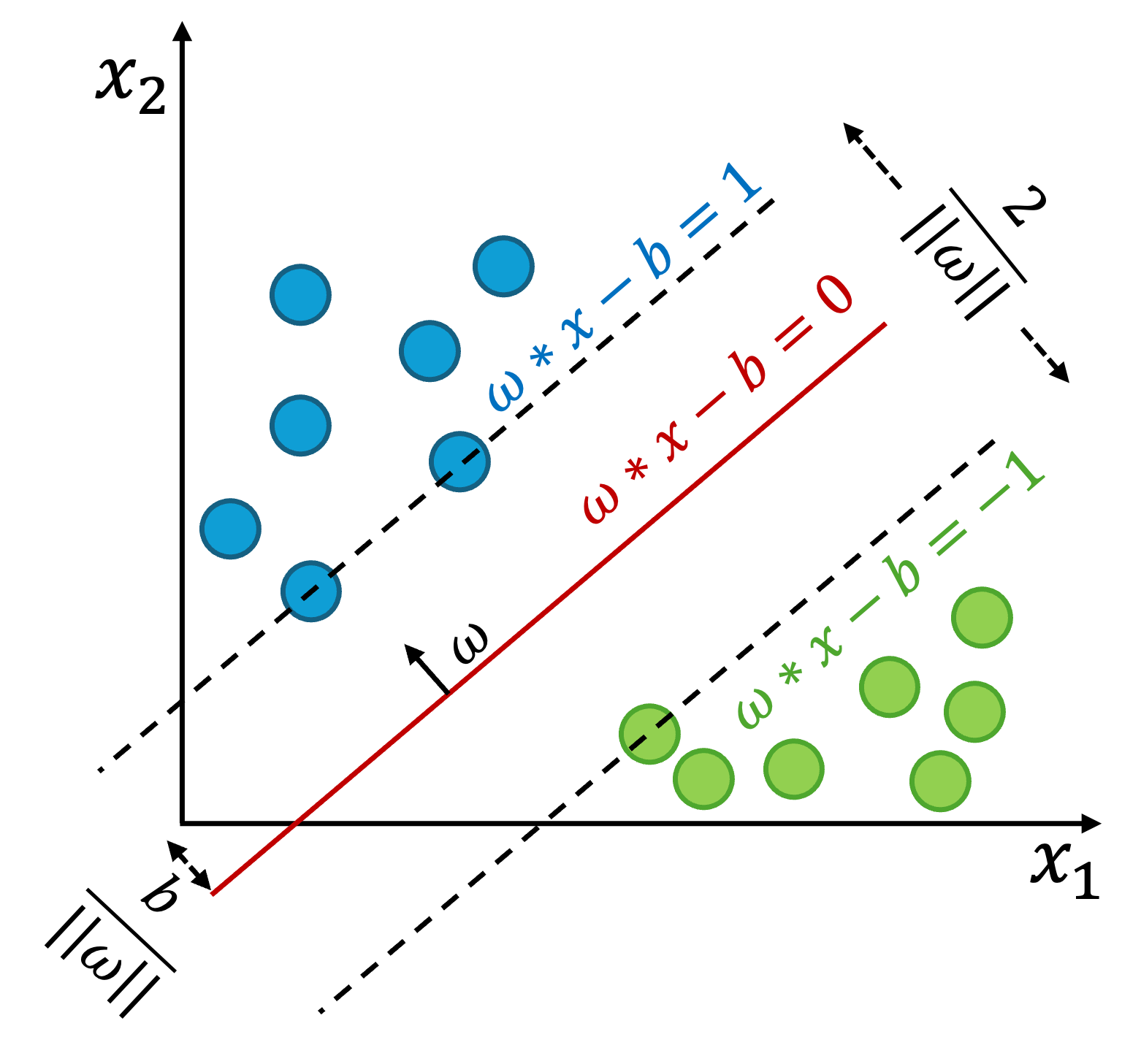 surrounded by two dashed lines as the support vectors.